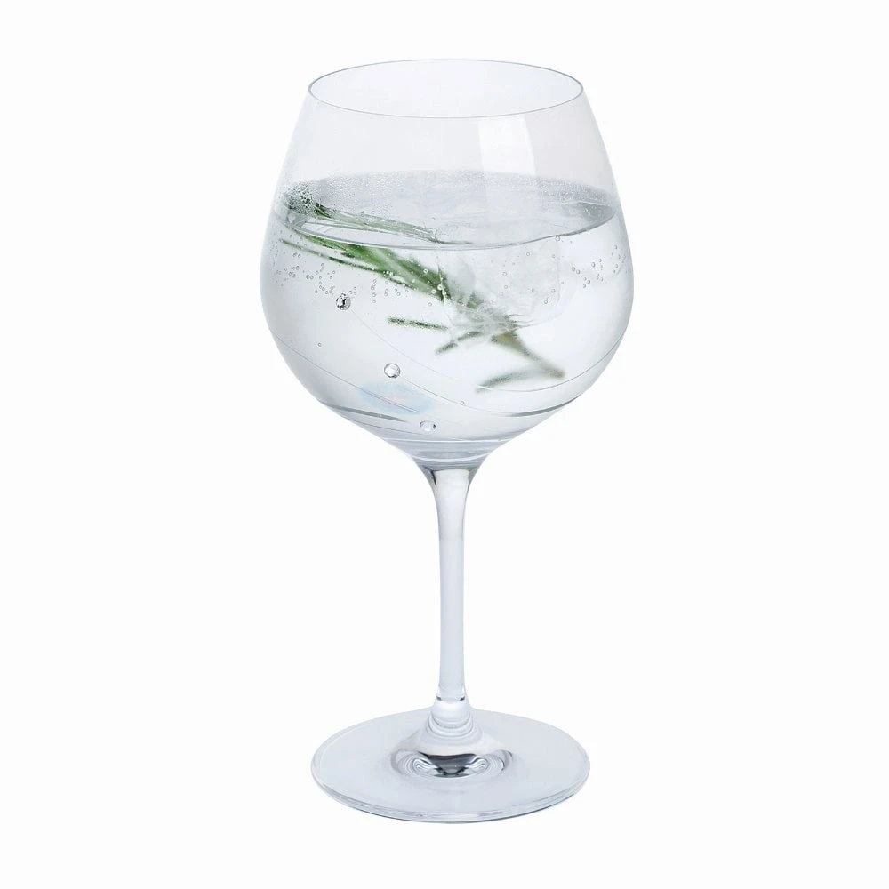 Enjoy the latest way to serve a good Gin and Tonic with these Spanish style Copa gin embellished with Crystals from Swarovski ยฎ. The generous round bowl of these gin glasses allows plenty of room for ice and a colourful citrus garnish. The tall stem keeps your hand from warming the cool contents to keep it always refreshing. Supplied in a smart gift box these glasses make a great gift for gin fans with style.